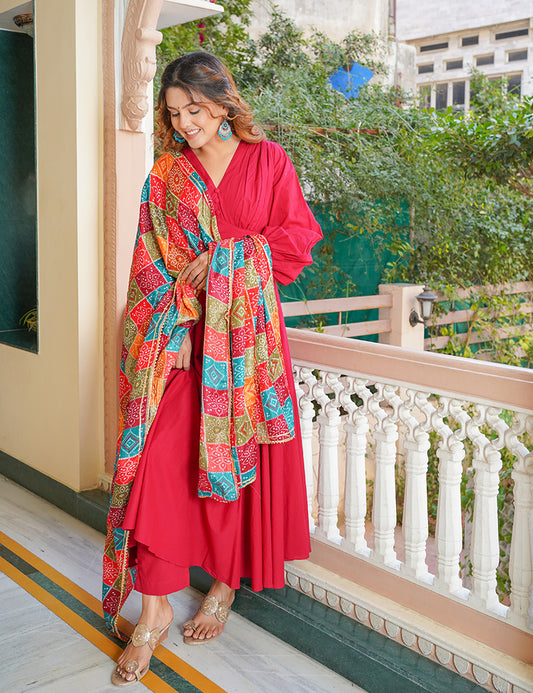 Black Cotton Anarkali Dress with Pant and Dupatta (3 Nos in 1 Set)