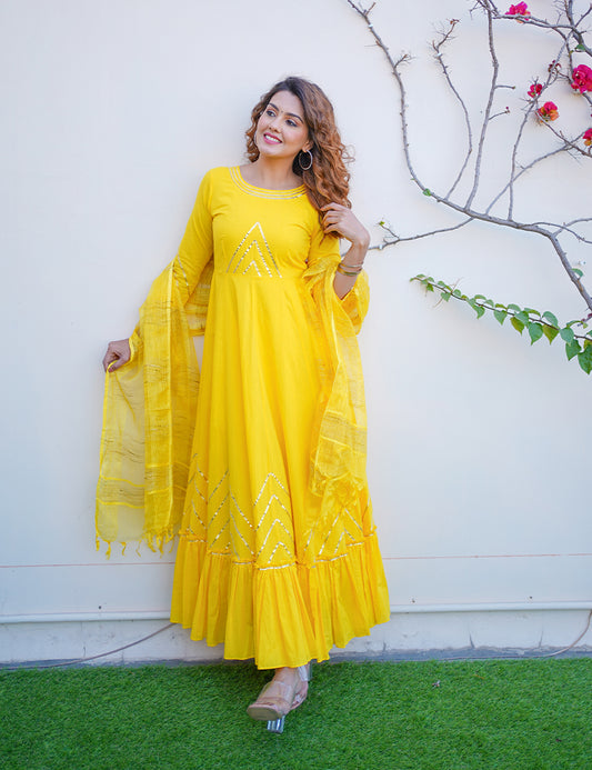 Yellow Anarkali Tier Dress With Dupatta (2 Nos in 1 Set)