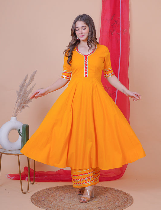 Yellow Anarkali Tier Dress With Dupatta (2 Nos in 1 Set)
