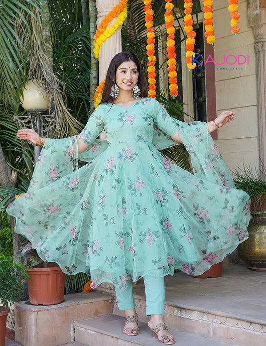 Naziya Long Dress With Pant and Dupatta Set ( 3 Nos in 1 Set)