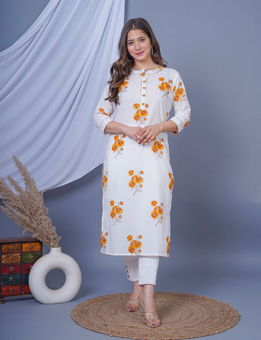 White Floral Kurta with Pant and Dupatta Sets (3 Nos in 1 Set)