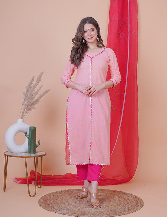 Peach Solid Long Kurta with Pant and Dupatta (3 Nos in 1 Set)